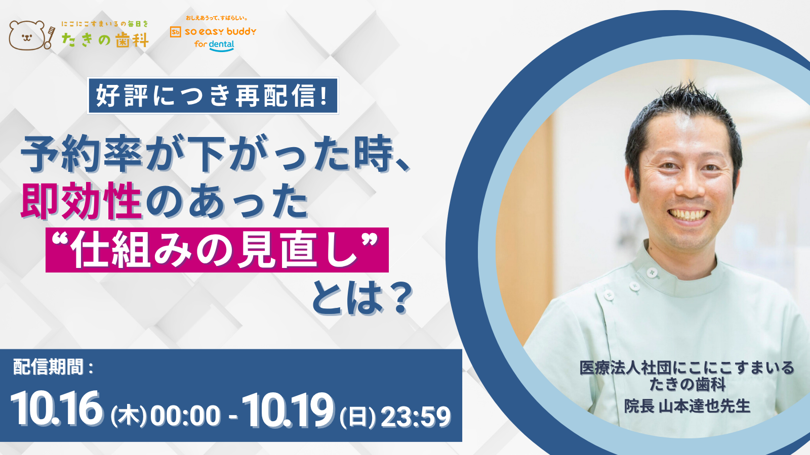 【1週間限定アーカイブ配信決定!】診療効率20%アップ! 10年で医院規模4倍、離職率ほぼなし? スタッフが「おしえあう」ことで伸びる、歯科医院のつくりかた